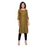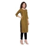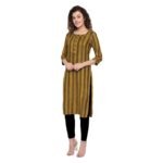 This Mustard Stripes Kurti is a perfect outfit that enhances the beauty of your wardrobe and brings a cute smile to your face. Make your style statement with this elegant and charming dress.