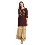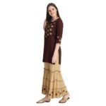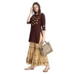 Showcase your feminine side and look dashing with this gorgeous Women’s Rich Dark Brown Embroidered Garara Set by Aksha.
