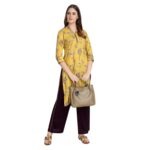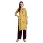 Complete your wardrobe with this trendy, stylish, and latest design Kurti. This, well-made Liva Rayon fabric-crafted Kurti speaks the language of elegance, comfort, and will make you stand out from the crowd.