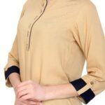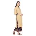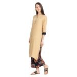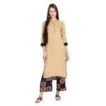 Its lightweight texture and soothing color will make you feel fresh and comfortable in every season and during any occasion. This Beige Solid Kurti With Multi-color Palazzo Set is easy to maintain, and the combination of ethnicity with contemporary fashion will make you look stunning and classy.