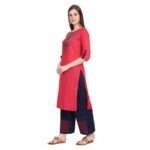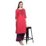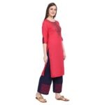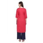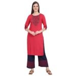 Look chic of the day with this elegant and artistic Pink colored palazzo set. It is a perfect dress for every occasion and every season. You can pair this graceful Kurti with long earrings, matching footwear, and a matching handbag to give you a hot and glamorous look.