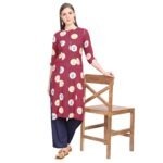 This beautiful Women’s Gold Foil Print Maroon Kurti by Aksha Lifestyle is crafted with well-made Liva Rayon Fabric stuff so that you don’t have to worry about the comfort of the fabric and to make you comfortable all day long.