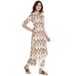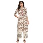 This top of the ikat Printed Kurta With Plazzo Set by Aksha LifeStyle is ideal for any season and occasion. You can accessorize this elegant palazzo set with low embellished flats or bellies and dangle earrings.