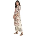 This outfit is a perfect blend of Ikat Print and Khadi. This set combines a straight-cut kurta and palazzo pants, both featuring Ikat print. Give your look a touch of trend and tradition with this Ikat-printed Kurta With palazzo set.
