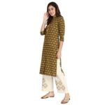 Women’s Green Ikat Printed Khadi Kurta With Palazzo