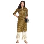 This top of the ikat Printed Kurta With Plazzo Set by Aksha LifeStyle is ideal for any season and occasion. You can accessorize this elegant palazzo set with low embellished flats or bellies and dangle earrings.