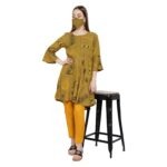 Bring your glam back with this elegant and beautiful Aksha Rayon Mehndi Short Kurti Trouser Set. Flaunt your simple, charming, and attractive look with this Bright color short-length Kurti Set.