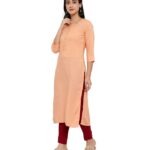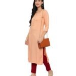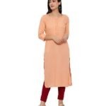 Are you looking for something to complement your wardrobe to make you look fashionable and elegant? Then, your search ends here at this beautiful Peach Embroidery Straight Kurta.