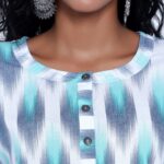 The Ikat print is the highlight of this Kurti & Kurta, adding a touch of timeless charm and a burst of vibrant colors. The intricate patterns created through the Ikat technique showcase the rich heritage of traditional craftsmanship, making each piece unique and visually captivating.