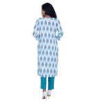 Invest in the Aksha Ikat Print Kurti & Kurta and embrace the blend of comfort and style it offers. With its vibrant Ikat print, round neck design, and knee-length silhouette, this ensemble is sure to make a fashion statement wherever you go.
