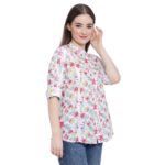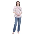Invest in the Aksha Modern Muse Tunic Pink Short Top Kurtis and embrace the modern and feminine vibe they bring to your wardrobe. With their blush pink color, 3/4 sleeves, collared neck, A-line shape, and floral print, these Kurtis are sure to make you feel confident and fashionable.