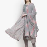 Invest in the Graceful Gulzar Grey Naira Ladies Suit by Aksha, and embrace the elegance, comfort, and craftsmanship it brings to your wardrobe. With its timeless grey color, fit and flare silhouette, floral printed dupatta, and meticulous manual workwear, this suit is a true representation of refined style.