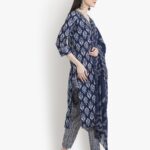 - Trellis Print Trousers: The trousers feature an eye-catching trellis print, adding a dash of visual interest and sophistication to the outfit. The print complements the navy blue kurta seamlessly.