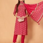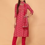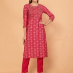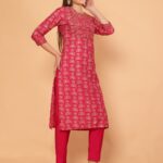Women’s Rusty Red Straight Printed Kurti With Trouser