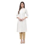 Are you looking for something to complement your wardrobe to make you look fashionable and elegant. Then, your search ends here at this beautiful White Printed Kurti.