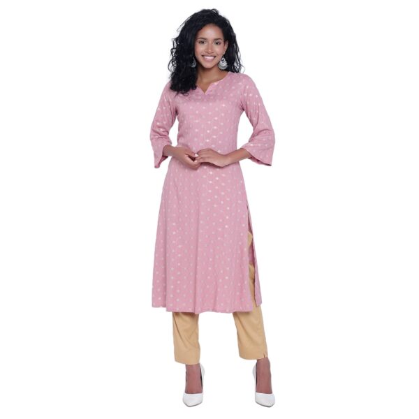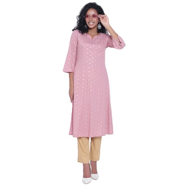 Introducing the A Line Fashion Finesse Women’s Regular Kurta by Aksha, a stylish and chic addition to your wardrobe. Crafted from high-quality rayon fabric, this knee-length Kurta offers a perfect blend of comfort and fashion-forward design.