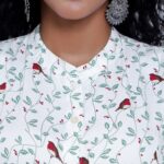 The highlight of this Kurti is its exquisite bird print, which brings a touch of nature’s beauty to your ensemble. The vibrant and detailed bird motifs add a playful and artistic element to the overall design, creating a visually captivating look.