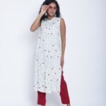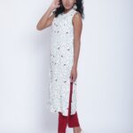 Pair this Kurti with your favorite bottoms, such as leggings, palazzos, or skirts, to create a complete and fashionable ensemble. Accessorize with minimalist jewelry, a stylish handbag, and your preferred footwear to enhance your overall look.