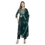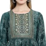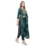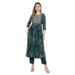 Invest in the Aksha Evergreen Charm Naira Cut Trouser Set and embrace its timeless charm. With its rich green color, computer work embroidery, knee-length Kurti, and ankle-length trousers, this set will make you look effortlessly stylish and sophisticated.