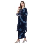 Invest in the Aksha Modern Matches Fancy Trouser Set and embrace the fusion of style and comfort. With its Liva Muslin fabric, trouser with dupatta, 3/4 sleeves, printed design, manual thread work embroidery, and round neck, this set is a perfect addition to your wardrobe.