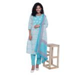 Aksha is a trusted brand known for its commitment to quality, and this Latest Collection & Comfortable New Trending Rama Green Women’s Kurta with Pant/Kurti Trousers and Dupatta Set lives up to that reputation. The cotton cambric fabric is breathable, soft, and skin-friendly, ensuring all-day comfort.