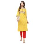 This beautiful Kurti by Aksha Lifestyle is crafted with well-made Liva Rayon Fabric stuff so that you don’t have to worry about the comfort of the fabric and to make you comfortable all day long.