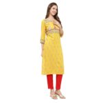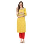 This round-neck, three-quarter sleeves Kurti is an ideal piece to show your love for Indian Traditional Style.