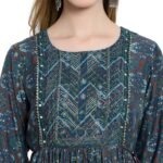 The knee-length Kurti features a flattering silhouette and 3/4 sleeves, providing a balanced coverage that is both comfortable and stylish. The printed pattern adds a trendy and eye-catching element to the Kurti, enhancing its overall appeal.