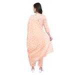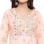 The knee-length Kurti showcases a flattering silhouette and features a round neck design. The round neck adds a classic and timeless touch, while the 3/4 sleeves offer a balanced coverage that is both comfortable and stylish.