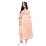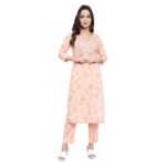 Invest in the Aksha Pink Elevated Elegance Trouser Set and embrace the elevated style and elegance it brings. With its beautiful pink color, floral print, manual work embroidery, round neck Kurti, and high-quality cotton cambric fabric, this set is a perfect choice for those seeking a fashionable and sophisticated look.