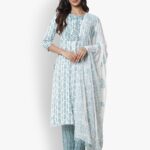 - Flower Patch Printed Dupatta: The chiffon dupatta features a charming flower patch print, enhancing the overall charm of the ensemble. Its soft and lightweight fabric drapes gracefully, completing the look with elegance.