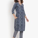 Women’s Indigo Solid Blue Kurti With Palazzo