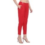 Upgrade your collection of basics with these Women Red Rayon Trousers by Aksha. Crafted in the finest Rayon and featuring an elasticated waist with drawstring makes this pair is extremely comfortable and perfect for daily use.