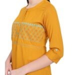 Impress everyone with your simple and attractive look by wearing this Mustard rayon Embroidery Kurti and give your trendy look a traditional touch.