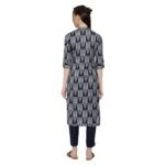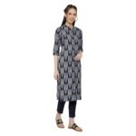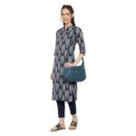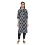 Women’s Navy Blue Ikat Print Kurti We have crafted this beautiful attire with Cotton Flex fabric and with irresistible color combinations and patterns to showcase your elegance and to make you feel comfortable all day long.